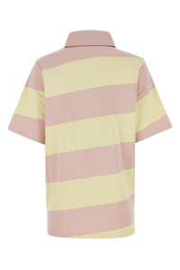 Polo shirt realized in pure cotton characterized by striped embroidery on the entire surface and Equestrian Knight print at the front. - Collar - Partial concealed buttons and single visible button closure at the front - Lateral slits on the hemline DETAILS Embroidered cotton polo shirt Exterior: 100% Cotton Made in portugal Sample size: XS