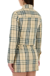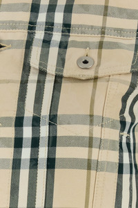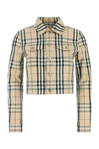 Jacket realized in pure cotton denim characterized by Burberry Check embroidery on the entire surface. - Collar - Buttons closure - Two chest pockets and two slit pockets at the front - Buttoned cuffs - Logoed label at the back - Unlined DETAILS Embroidered denim jacket Exterior: 100% Cotton Made in italy Model is 174 cm and is wearing a size XS