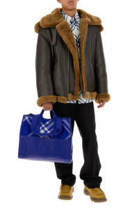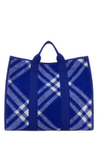 Shopping bag realized in fabric with leather inserts at the front characterized by Check embroidery on the entire surface. - Two fabric flat handles - Snap-fit closure - Two patch pockets at the front - Lined interior with two patch pockets DETAILS Embroidered fabric Knight shopping bag Exterior: 100% Wool 100% Leather Lining: 100% Fabric Finishing: Silver metal Made in italy Width: 42 cm Height: 35,5 cm Depth: 16 cm Handle height: 8 cm