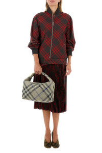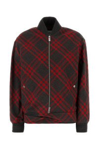 Bomber jacket realized in polyester blend characterized by Burberry Check embroidery on the entire surface. - Ribbed crew-neck, cuffs and hemline - Zip closure - Two slit pockets at the front - Laces to tie on the hemline - Lined DETAILS Embroidered polyester blend bomber jacket Exterior: 55% Polyester 45% Wool Lining: 94% Wool 4% Nylon 2% Elastane Made in albanie Model is 175 cm and is wearing a size 4