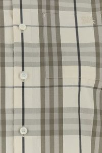 Shirt realized in pure cotton poplin characterized by Burberry Check embroidery on the entire surface and Equestrian Knight embroidery on the chest. - Short-pointed collar - Buttons closure - A chest pocket - Angle cuffs with button - Rear yoke and placket DETAILS Embroidered poplin shirt Exterior: 100% Cotton Made in tunisia Sample size: M