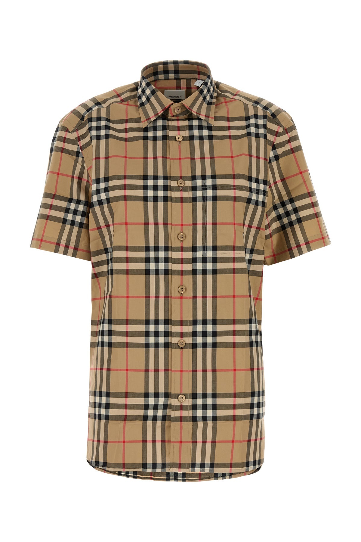 Short-sleeves shirt realized in pure cotton poplin characterized by Burberry Check embroidery on the entire surface. - Italian collar - Buttons closure - Slightly longer back DETAILS Embroidered poplin shirt Exterior: 100% Cotton Made in Sample size: S