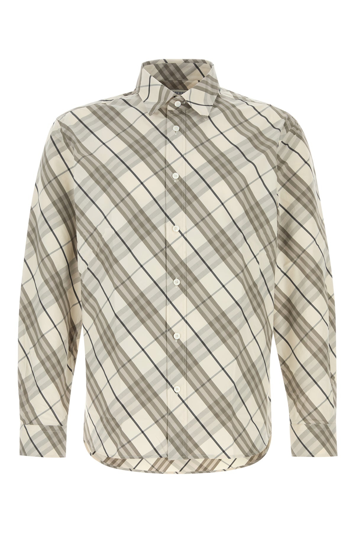 Shirt realized in pure cotton poplin characterized by Burberry Check embroidery on the entire surface. - Short-pointed collar - Buttons closure - Angle cuffs with button - Rear yoke and placket DETAILS Embroidered poplin shirt Exterior: 100% Cotton Made in tunisia Sample size: M
