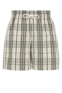 Shorts realized in pure cotton poplin characterized by Burberry Check embroidery on the entire surface. - Elastic waist with drawstring - Slant pcoekts and a patch pocket at the back DETAILS Embroidered poplin shorts Exterior: 100% Cotton Made in romania Sample size: 6
