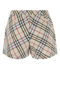 Shorts realized in pure cotton poplin characterized by Burberry Check embroidery on the entire surface. - Drawstring at the waist - Concealed buttons and single visible button closure - Seam pockets and a slit pocket at the back DETAILS Embroidered poplin shorts Exterior: 100% Cotton Made in romania Sample size: 4