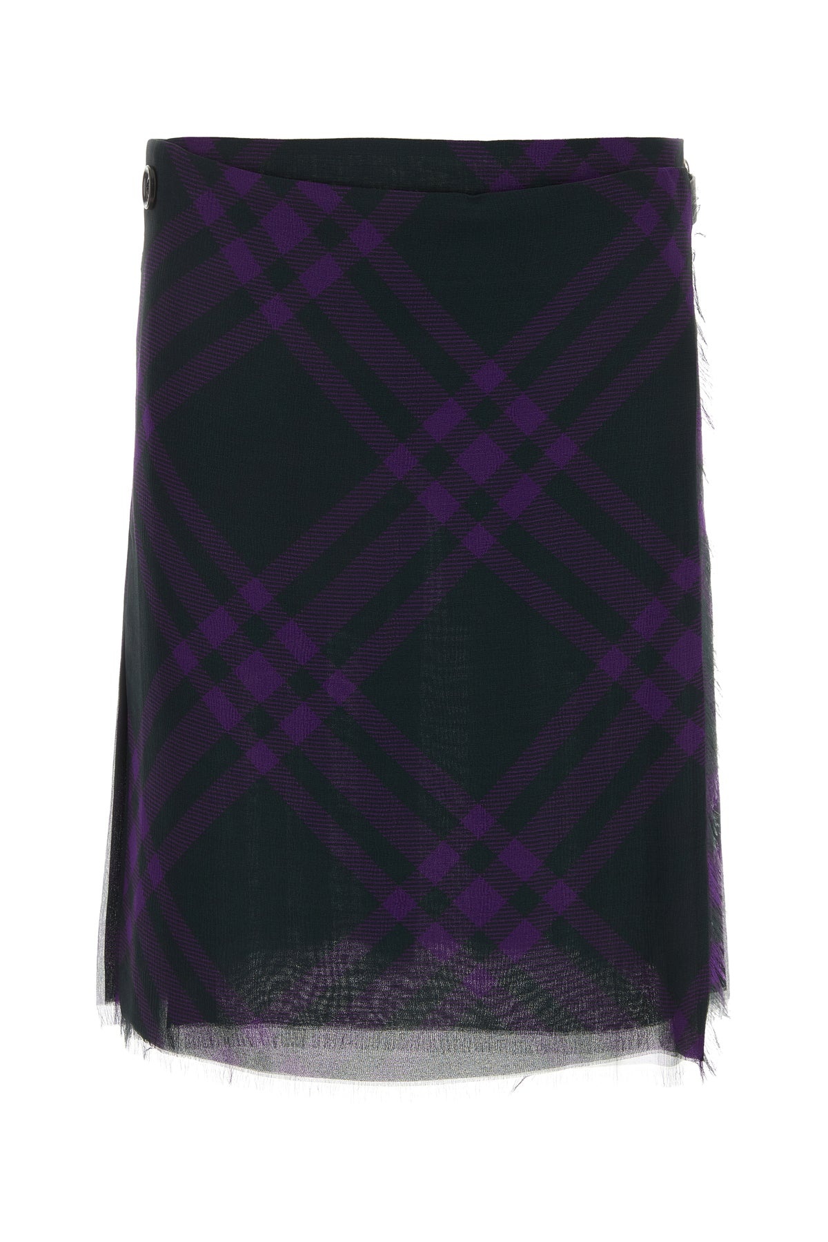 Kilt skirt realized in pure silk characterized by Check embroidery on the entire surface. - Wrap closure by button and strap with metal buckle - Fringed trimmings - Unlined DETAILS Embroidered silk skirt Exterior: 100% Silk Made in italy Model is 180 cm and is wearing a size 4