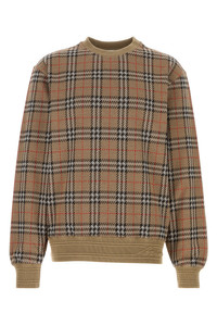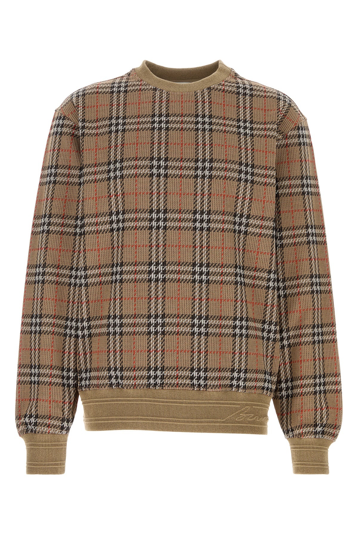 Sweater realized in stretch cotton blend characterized by Burberry Check embroidery on the entire surface. - Ribbed crew-neck, cuffs and hemline DETAILS Embroidered stretch cotton blend sweater Exterior: 92% Cotton 6% Nylon 2% Elastane Made in portugal Model is 170 cm and is wearing a size M