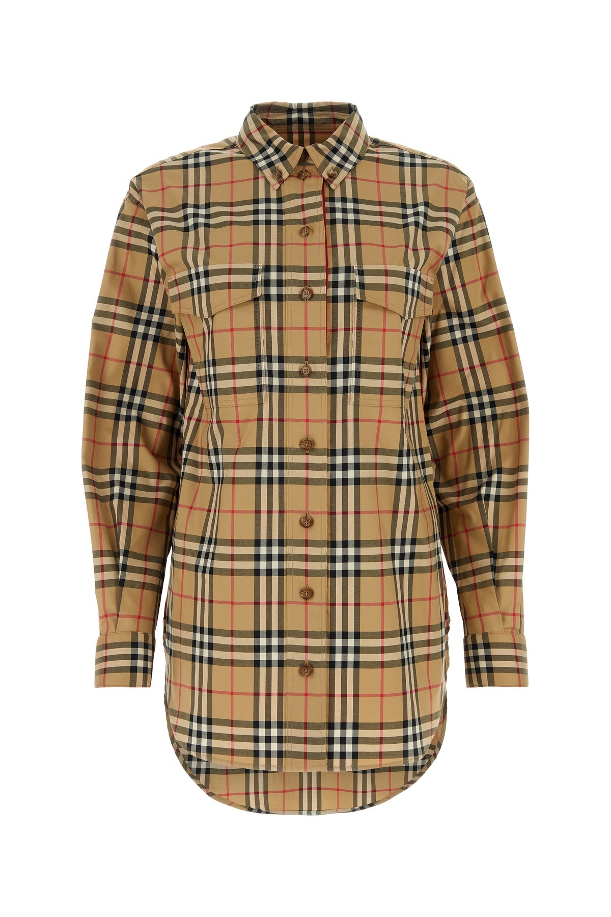 Shirt realized in stretch cotton characterized by Check embroidery on the entire surface enriched by peculiar ribbons on the sides. - Button-down collar - Two chest pockets - Angle cuffs with button - Rear yoke and placket DETAILS Embroidered stretch cotton shirt Exterior: 95% Cotton 5% Elastane Made in thailand Model is 176 cm and is wearing a size 2