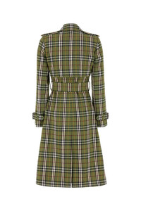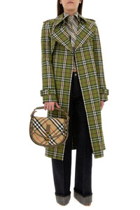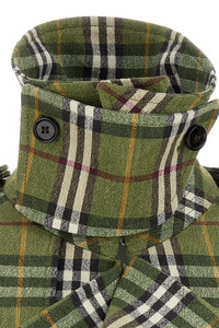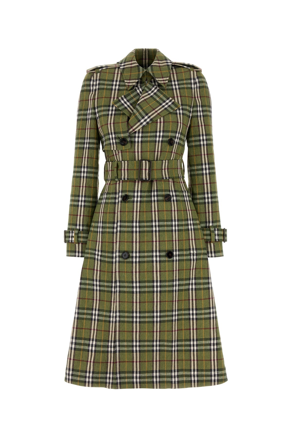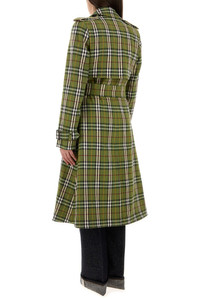 Trench coat realized in stretch linen characterized by Burberry Check motif embroidery on the entire surface enriched by detachable belt with metal B buckle. - Pointed collar - Undercollar - Epaulettes - Buttons closure - Two slit pockets on the sides - Adjustable straps on the cuffs - Gun flap and storm shield - Central slit at the back - Unlined DETAILS Embroidered stretch linen trench coat Exterior: 97% Linen 3% Elastane Made in poland Model is 170 cm and is wearing a size 3