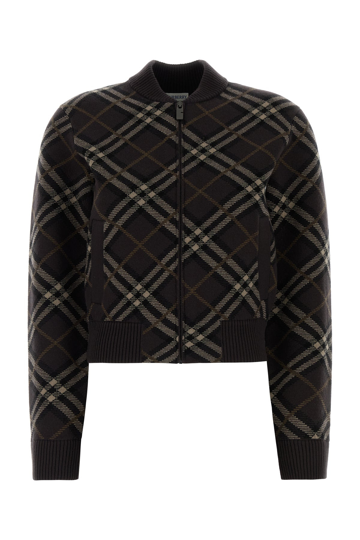 Cardigan realized in stretch wool blend characterized by Burberry Check embroidery on the entire surface. - Ribbed crew-neck, cuffs and hemline - Zip closure DETAILS Embroidered stretch wool blend cardigan Exterior: 70% Wool 27% Cashmere 2% Nylon 1% Elastane Made in romania Sample size: XS