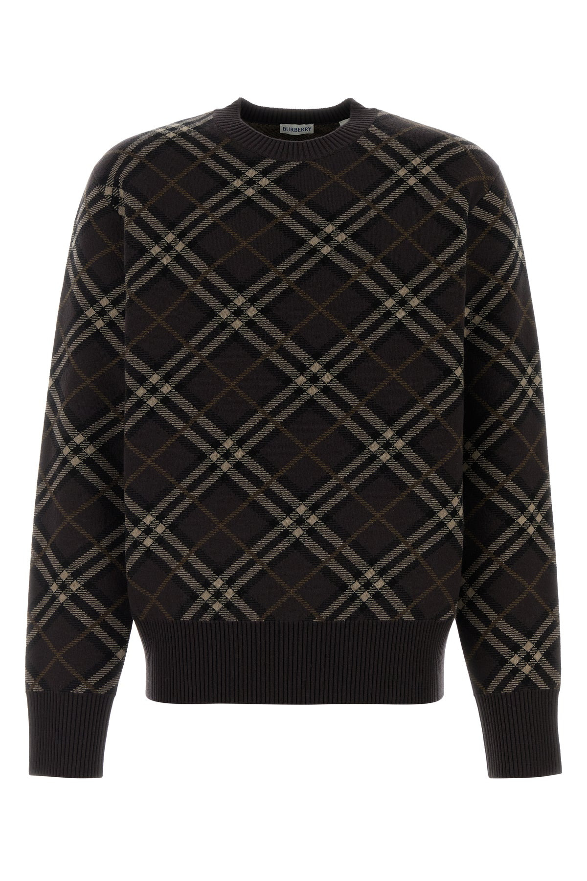 Sweater realized in stretch wool blend characterized by Burberry Check embroidery on the entire surface. - Ribbed crew-neck, cuffs and hemline DETAILS Embroidered stretch wool blend sweater Exterior: 70% Wool 27% Cashmere 2% Nylon 1% Elastane Made in romania Sample size: M