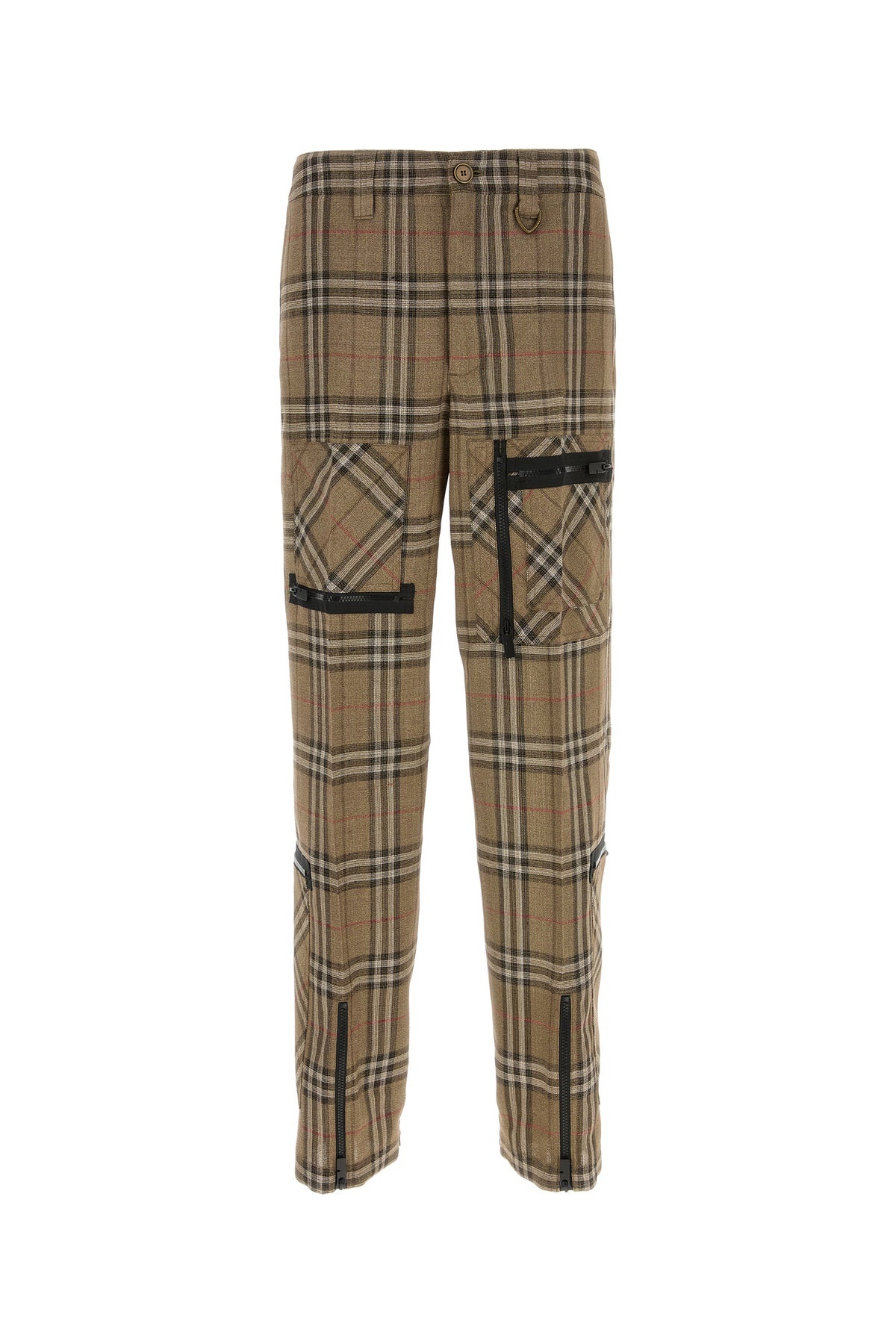 Cargo pant realized in viscose and silk characterized by Burberry Check motif embroidery on the entire surface. - Belt loops at the waist - Concealed zip and a single visible button closure - Slant pockets, three zip pockets at the front, two zip pockets on the sides and two slit pockets at the back - Zipped hemline DETAILS Embroidered viscose blend cargo pant Exterior: 58% Viscose 42% Silk Made in poland Sample size: 48