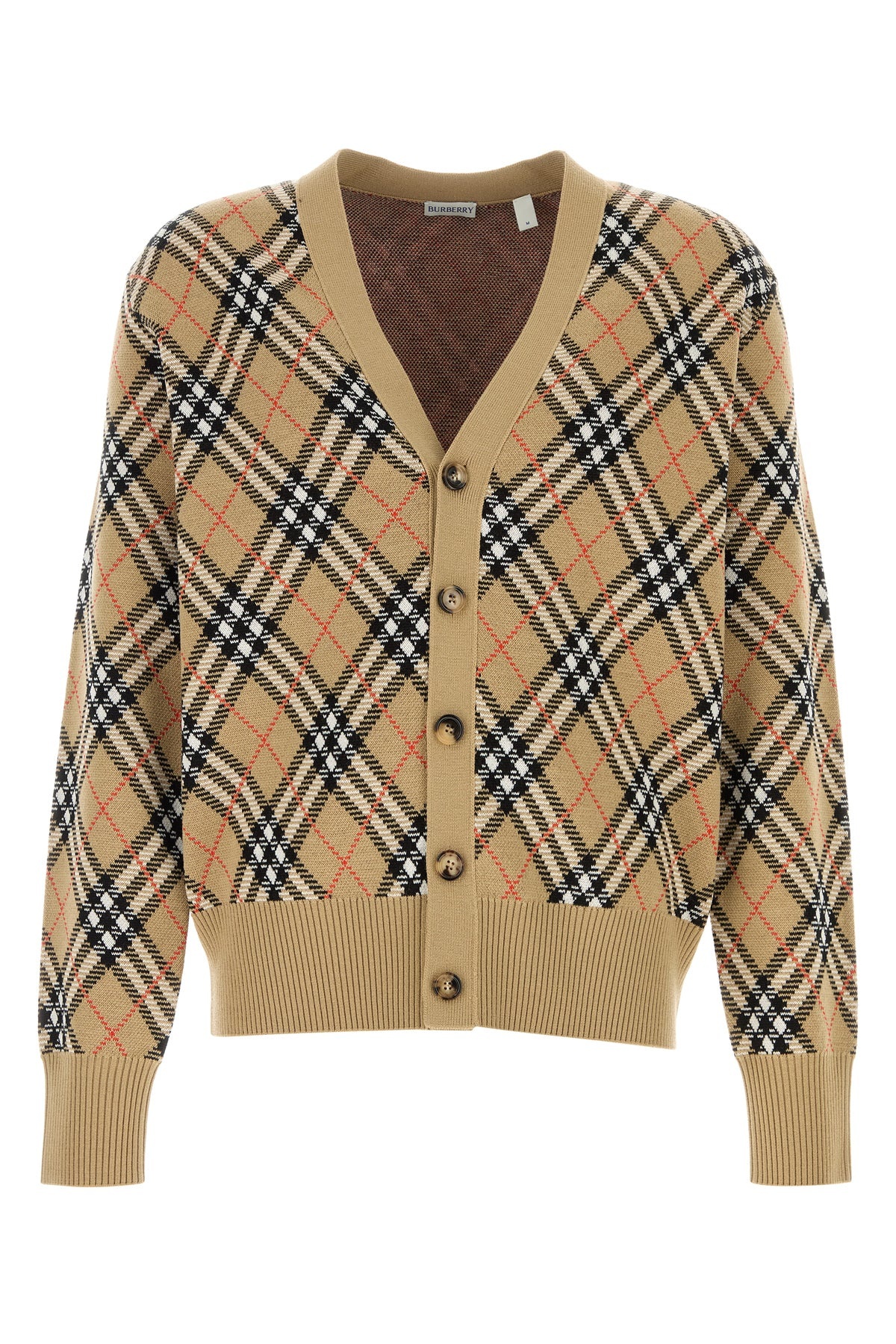 Cardigan realized in wool blend characterized by Burberry Check embroidery on the entire surface. - V neckline - Buttons closure - Ribbed cuffs and hemline DETAILS Embroidered wool blend cardigan Exterior: 92% Wool 8% Polyester Made in romania Sample size: M