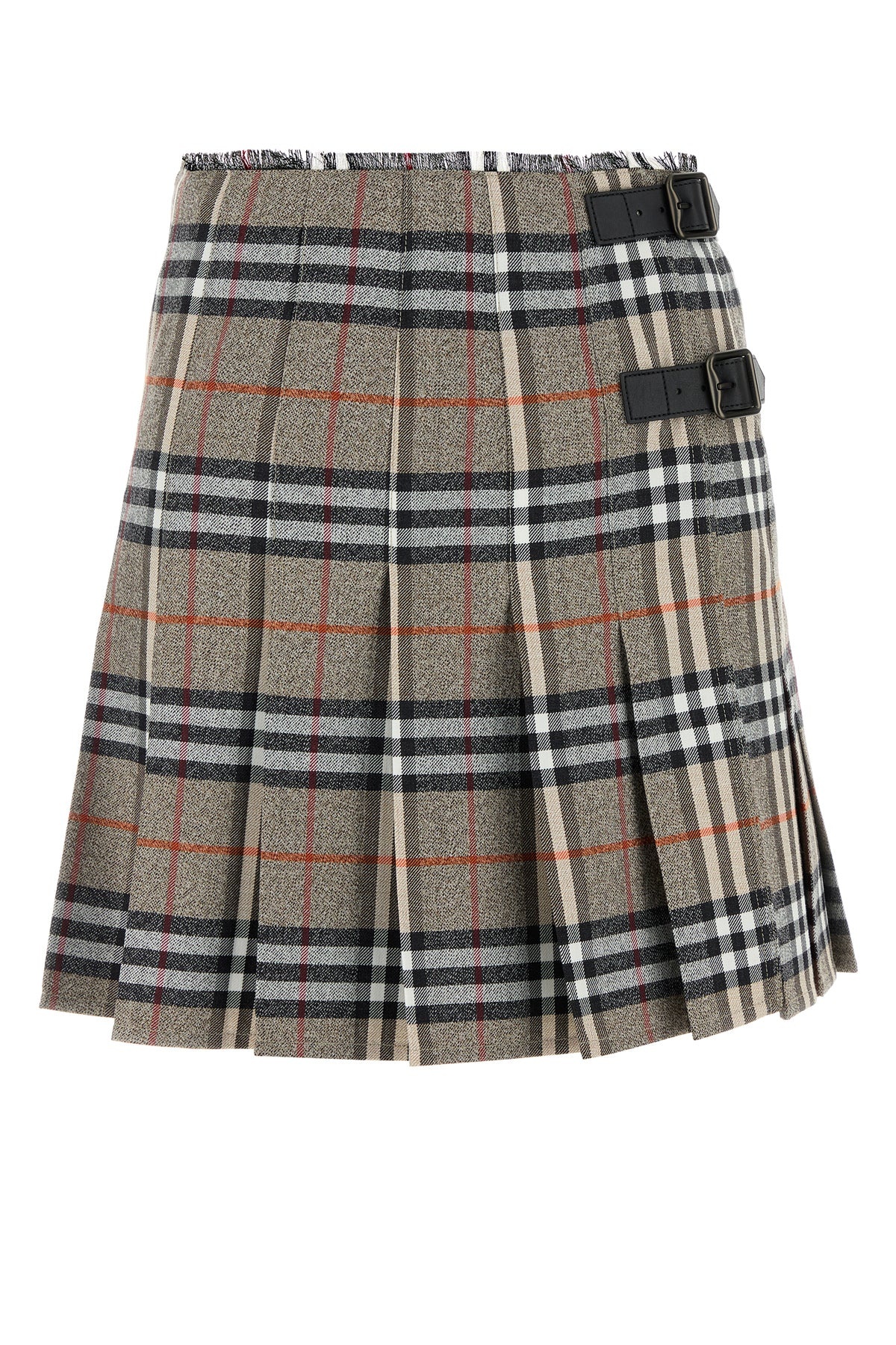 Skirt realized in pure wool characterized by Burberry Check embroidery on the entire surface. - Wrap closure by straps - Unlined DETAILS Embroidered wool skirt Exterior: 100% Wool Made in poland Sample size: 4