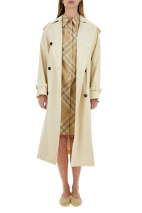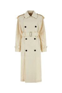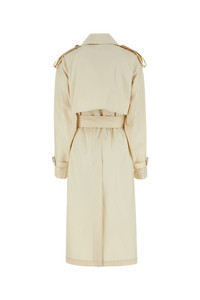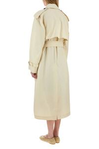 Trench realized in pure cotton gabardine enriched by storm shield. - Collar - Double-breasted closure by buttons - Epaulettes - Two slit pockets at the front - Adjustable straps on the cuffs - Detachable tonal fabric belt - Central slit at the back - Unlined DETAILS Ivory gabardine trench coat Exterior: 100% Cotton Made in albanie Model is 178 cm and is wearing a size 4
