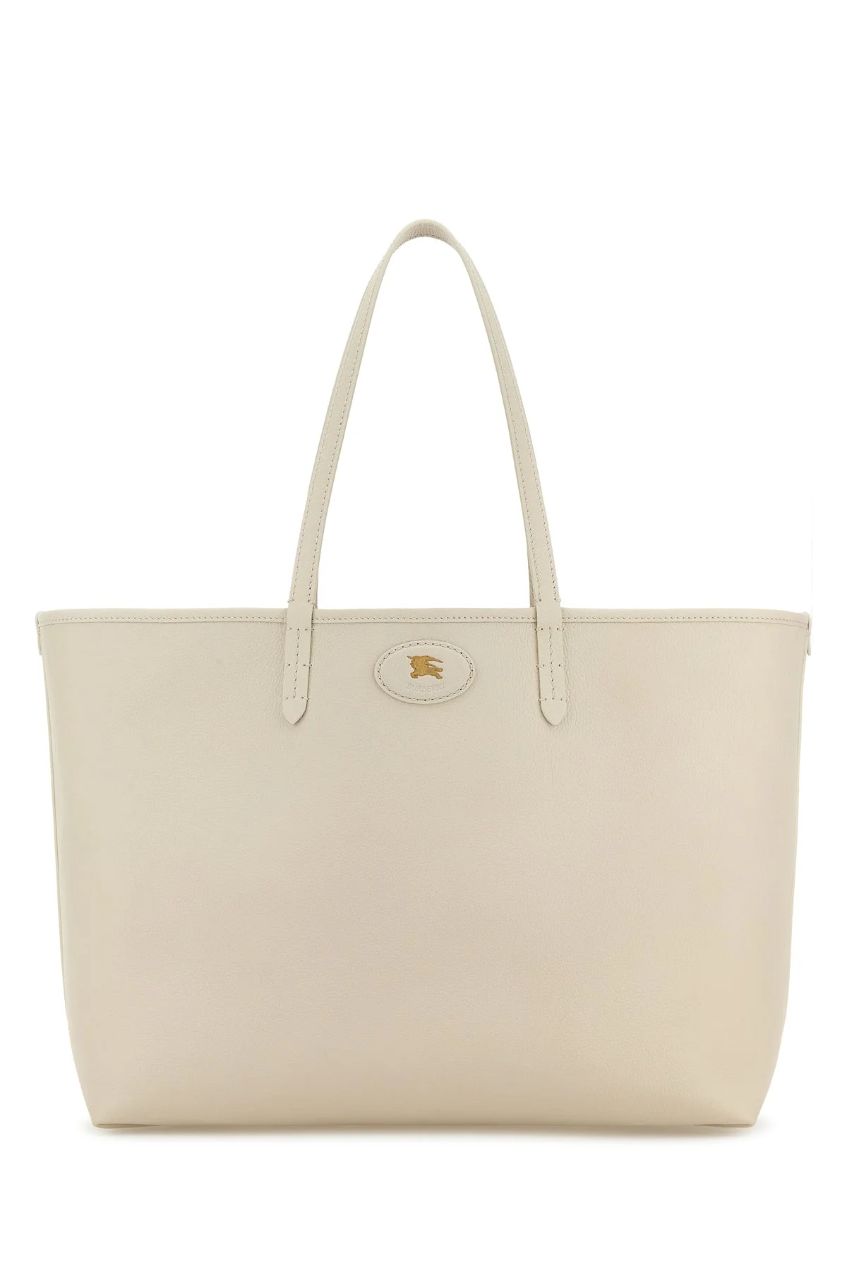 Reversible shopping bag realized in pebble leather enriched by Equestrian Knight patch at the front. - Two leather flat handles - Contrasting interior with a pouch DETAILS Ivory leather reversibile bag Exterior: 100% Calf Lining: 69% Cotton 21% Viscose 10% Linen Finishing: Golden metal Made in italy Width: 37,5 cm Height: 30 cm Depth: 17 cm Handle height: 23 cm