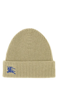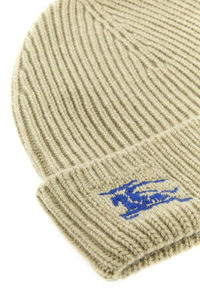 Beanie hat realized in pure cashmere characterized by contrasting Equestrian Knight embroidery on the hemline. - Foldable hemline - Unlined DETAILS Khaki cashmere beanie hat Exterior: 100% Cashmere Made in uk