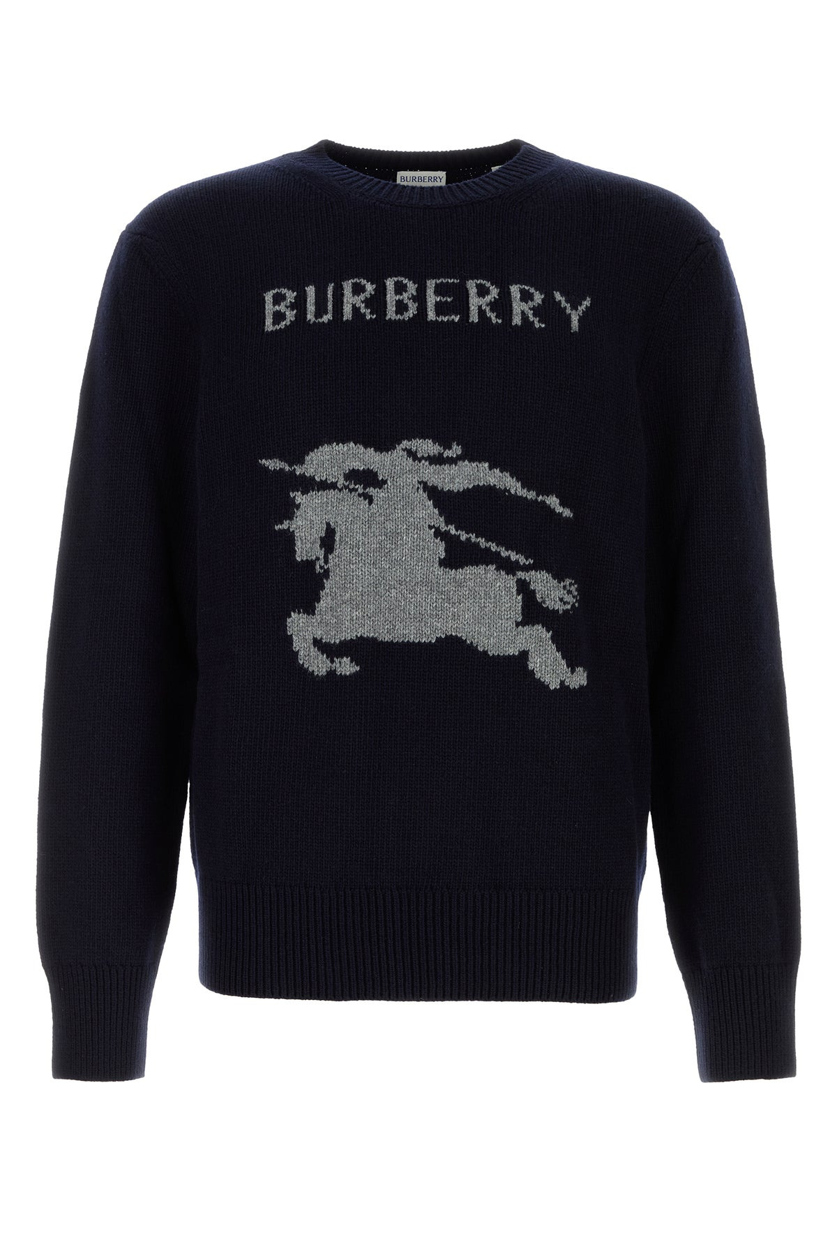Sweater realized in wool and cashmere characterized by contrasting equestrian Knight embroidery at the front. - Ribbed crew-neck, cuffs and hemline DETAILS Navy blue wool blend sweater Exterior: 71% Wool 29% Cashmere Made in italy Sample size: M
