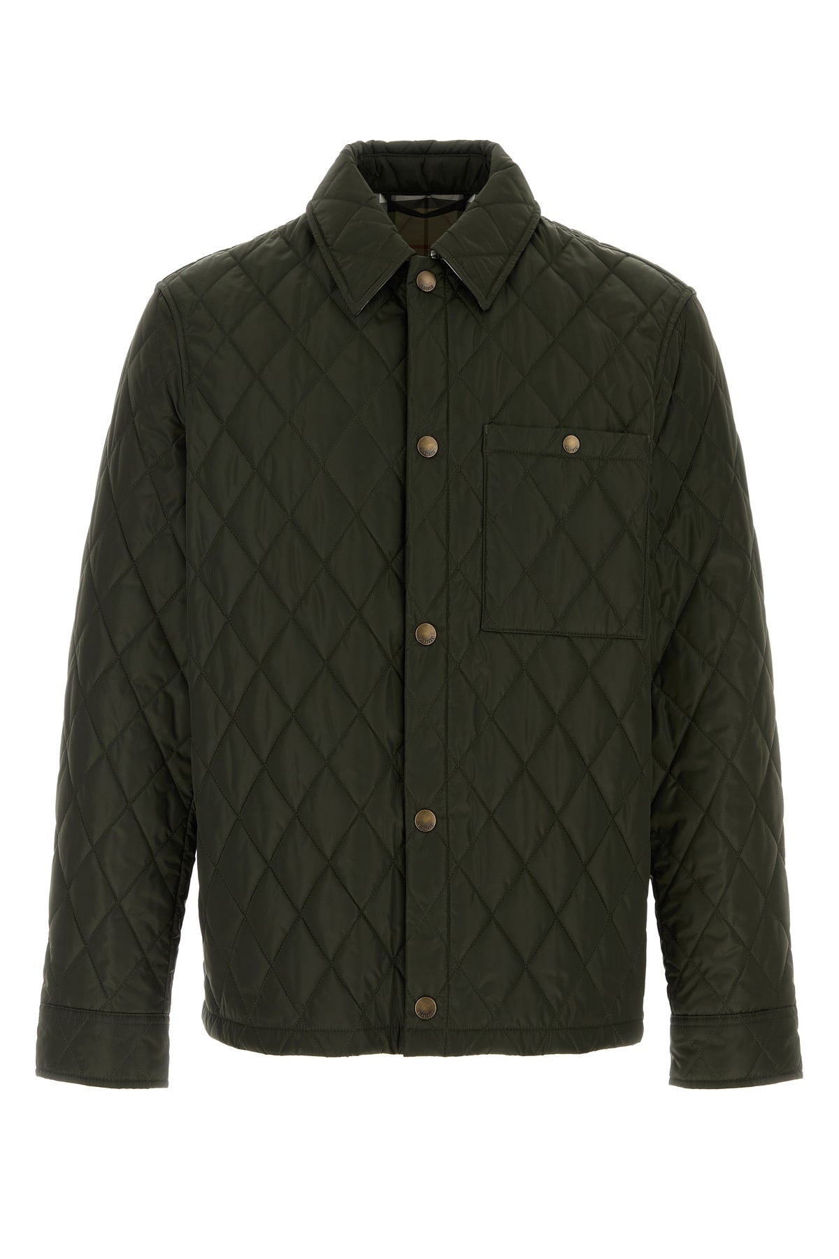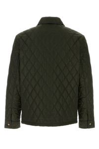 Jacket realized in quilted nylon. - Collar - Buttons closure - A chest pocket - Adjustable cuffs by buttons - Lined DETAILS Olive green nylon jacket Exterior: 100% Nylon Lining: 100% Cotton Made in thailand Sample size: M