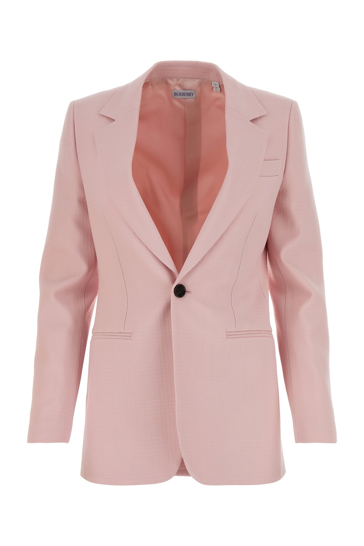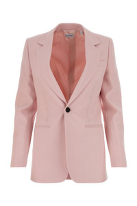 Blazer realized in pure wool characterized by notch lapels. - Single-breasted closure by buttons - A chest pocket and two slit pockets at the front - Two buttons on the sleeves - Central slit at the back - Lined DETAILS Pink wool blazer Exterior: 100% Wool Lining: 100% Viscose Made in italy Sample size: 4
