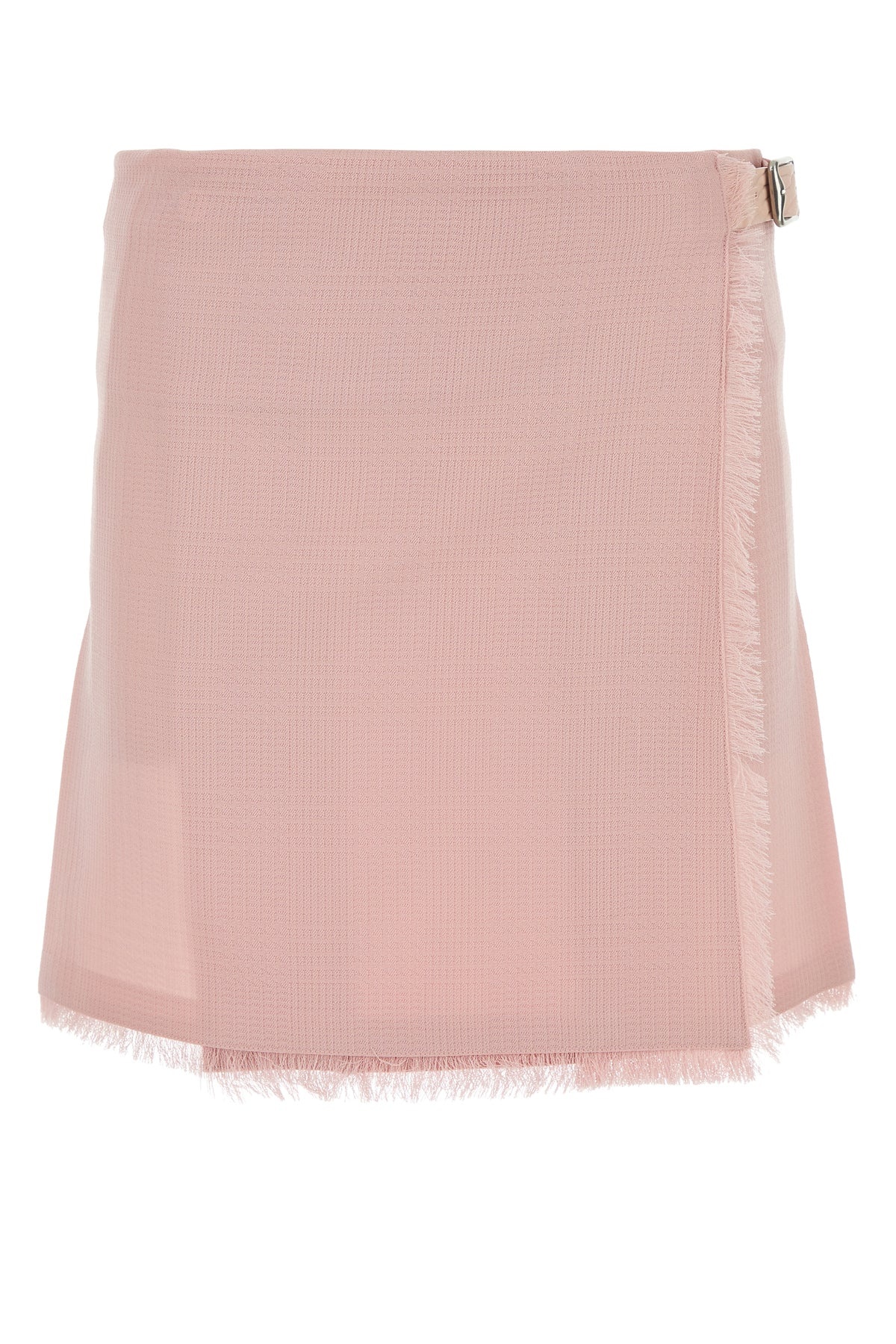 Mini skirt realized in pure wool characterized by pleats at the back. - Adjustable strap closure on the side - Unlined DETAILS Pink wool mini skirt Exterior: 100% Wool Made in poland Model is 173 cm and is wearing a size 4