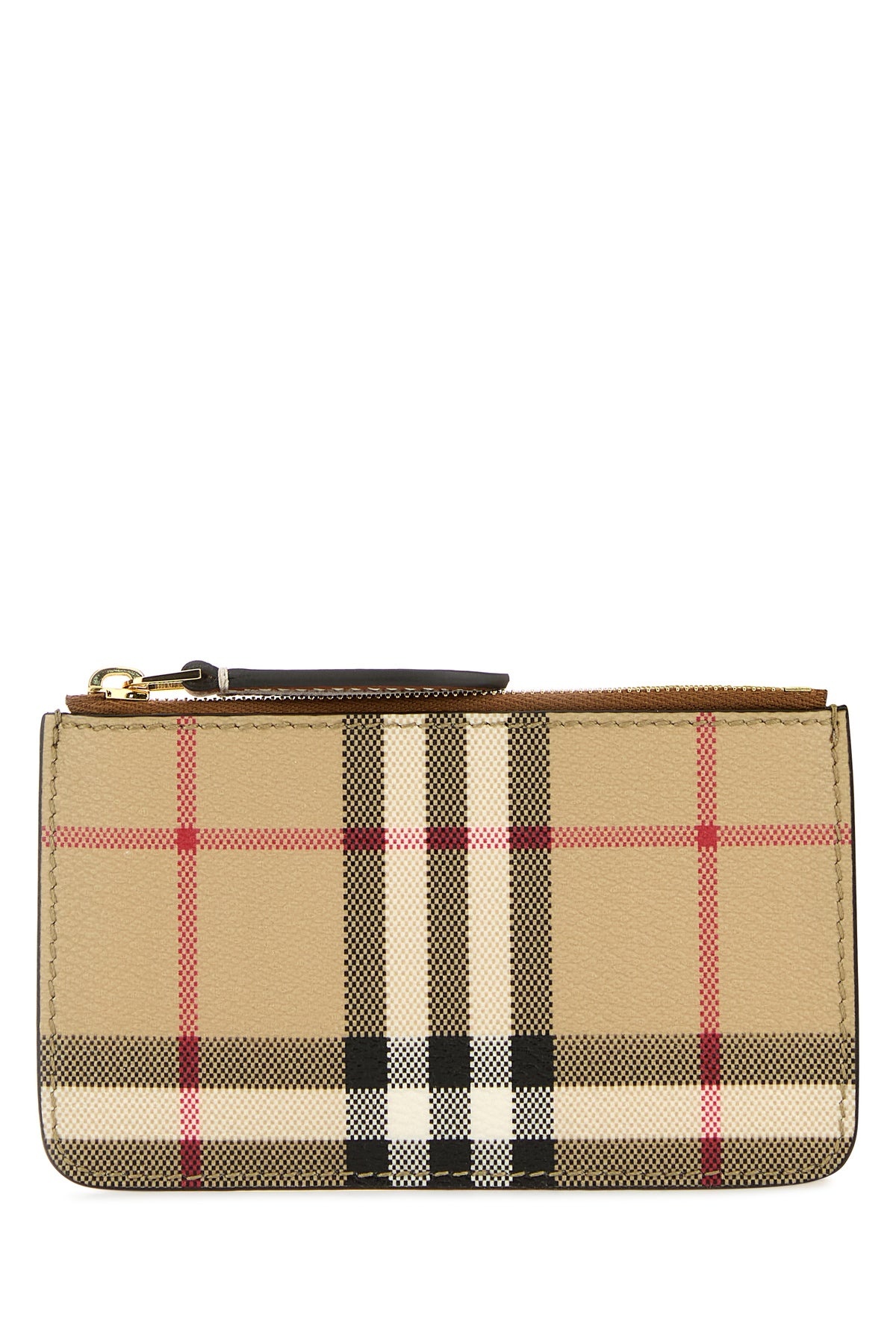 Card holder realized in coated e-canvas characterized by Vintage Check print on the entire surface. - A zip pocket and four credit card slots DETAILS Printed e-canvas card holder Exterior: 75% Thermoplastic polyurethane 25% Cotton Made in Length: 13 cm Height: 7,5 cm