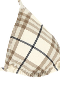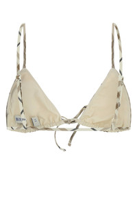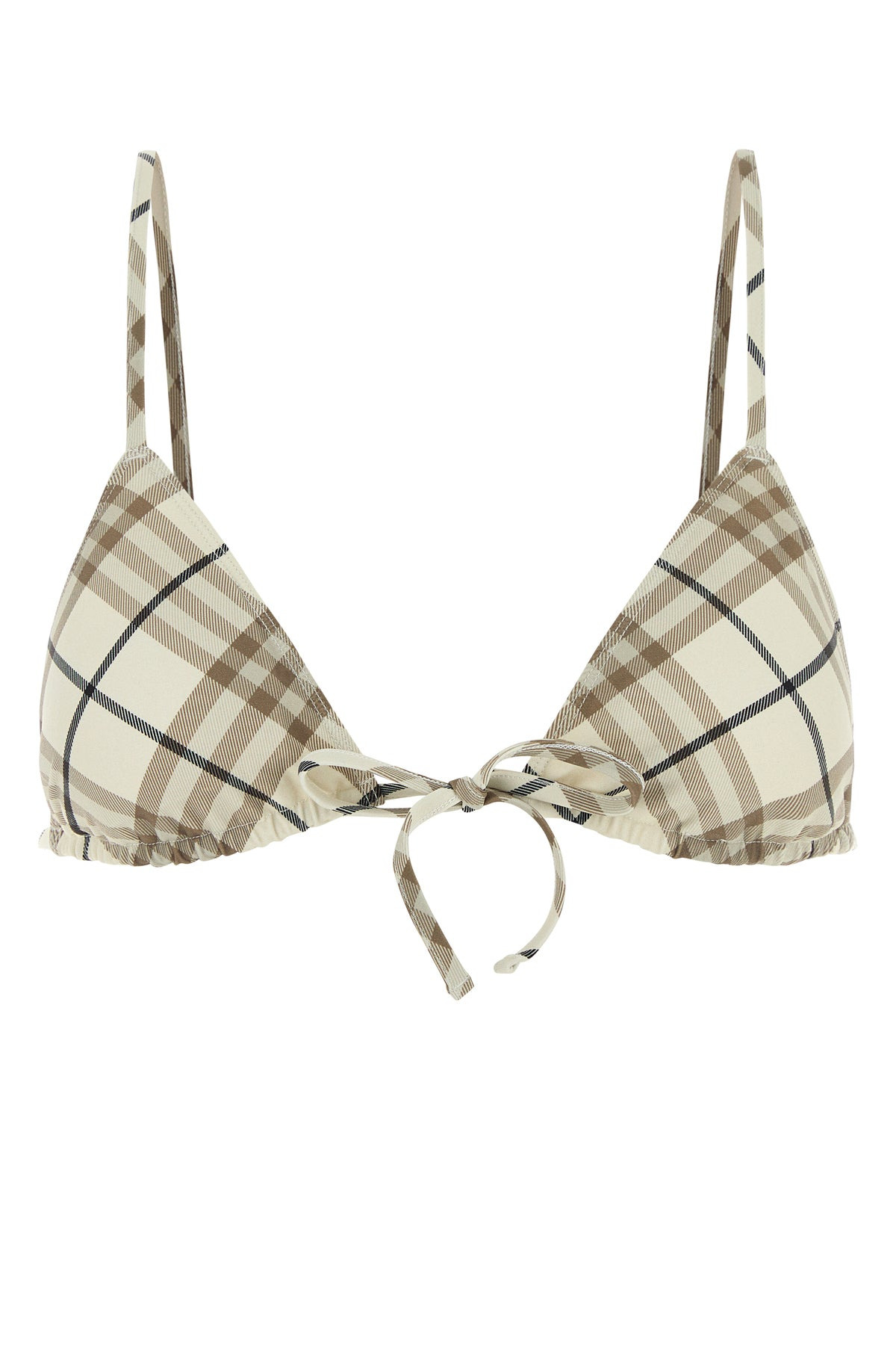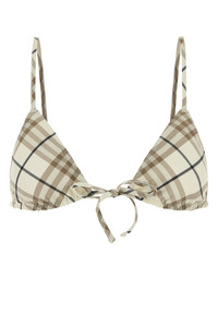 Triangle bikini top realized in stretch nylon characterized by Burberry Check print on the entire surface. - Laces to tie at the back - Lined DETAILS Printed stretch nylon bikini top Exterior: 80% Nylon 20% Elastane Lining: 80% Nylon 20% Elastane Made in portugal Sample size: XS