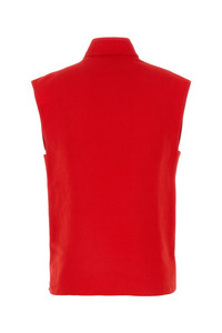 Vest realized in canvas characterized by high neck with strap. - Partial zip closure at the front - Chest pockets - Lateral slits on the hemline DETAILS Red canvas vest Exterior: 69% Paper fibre 31% Viscose Made in romania Sample size: 4