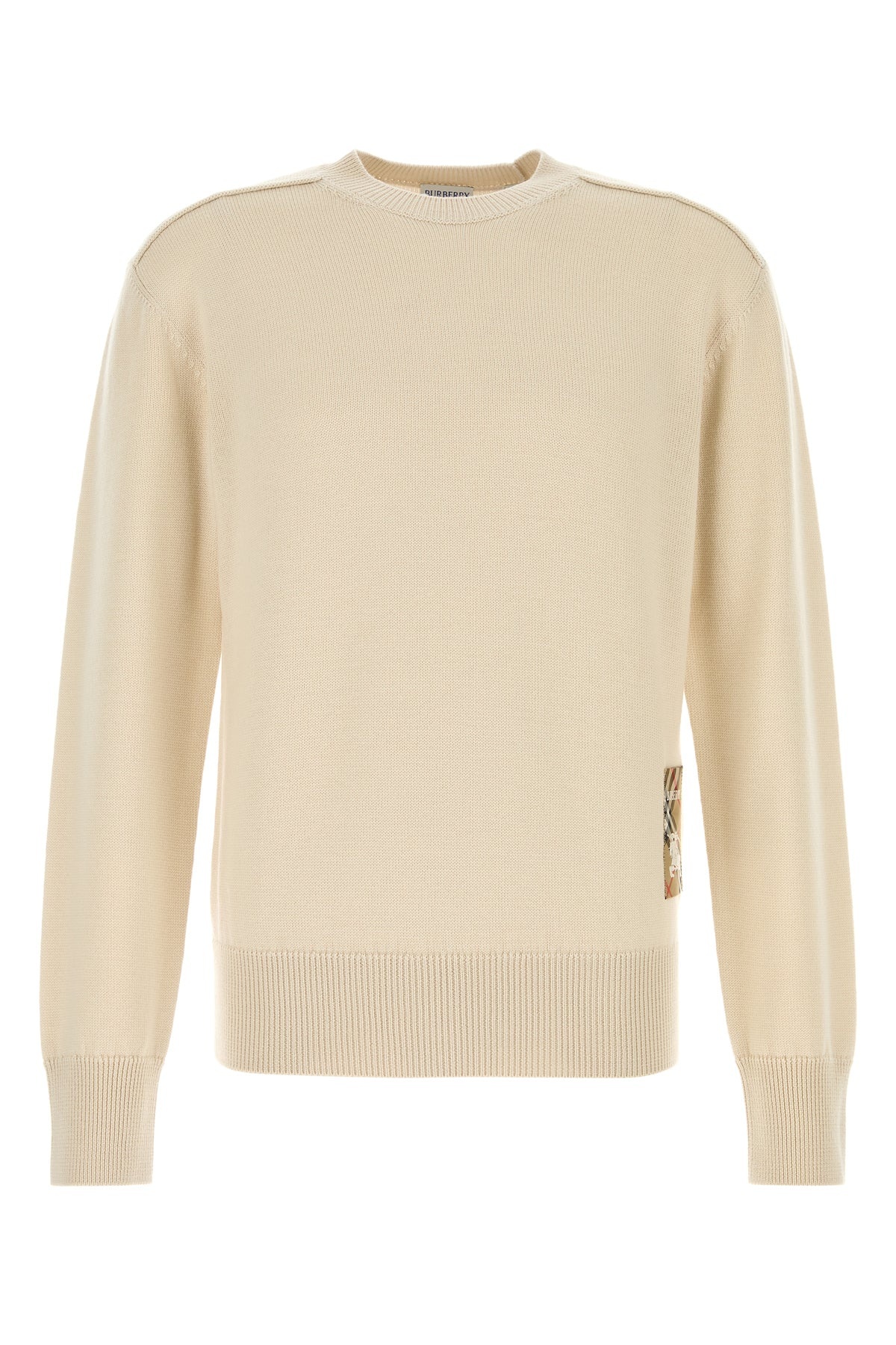 Sweater realized in pure wool enriched by contrasting logoed label on the hemline. - Ribbed crew-neck, cuffs and hemline DETAILS Sand wool sweater Exterior: 100% Wool Made in italy Sample size: M