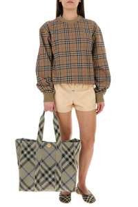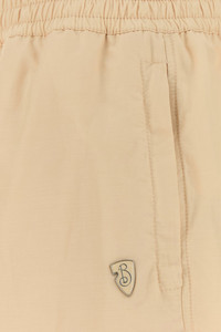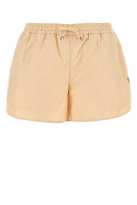 Shorts realized in nylon and cotton enriched by metal B Shield detail at the front. - Gathered elastic waist with drawstring - Two zip pockets on the sides and a slit pocket at the back - Lateral slits on the hemline DETAILS Skin pink nylon blend shorts Exterior: 60% Nylon 40% Cotton Made in romania Model is 170 cm and is wearing a size 6