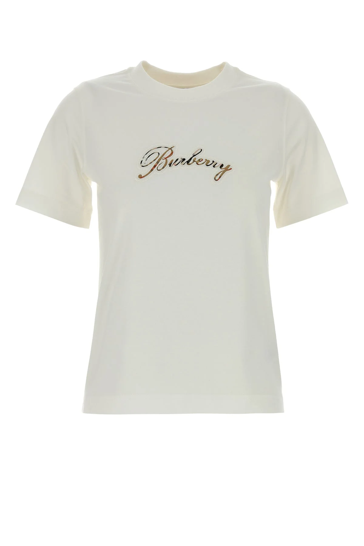 T-shirt realized in pure cotton characterized by contrasting embroidered logo on the chest. - Ribbed crew-neck DETAILS White cotton t-shirt Exterior: 100% Cotton Made in portugal Sample size: XS