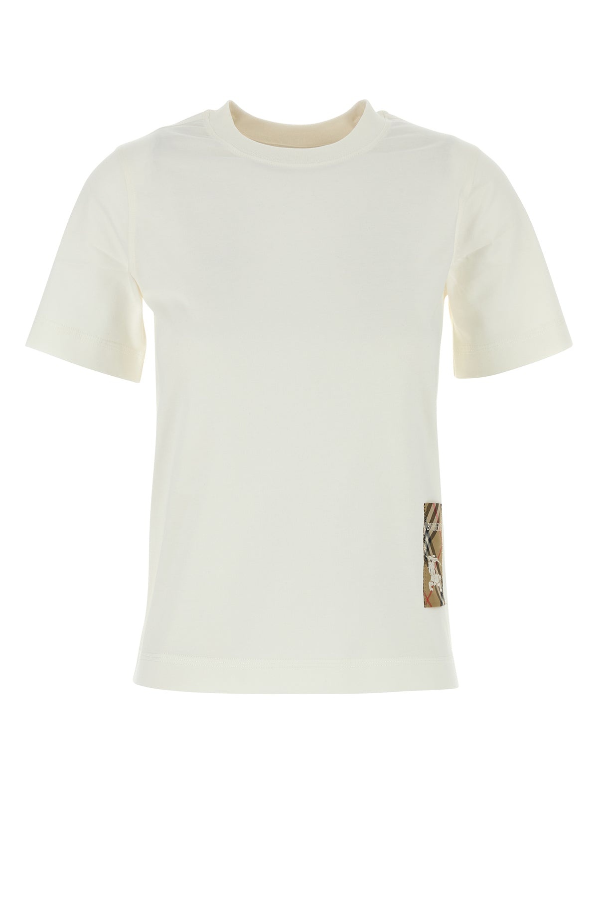 T-shirt realized in pure cotton enriched by contrasting logo patch on the hemline. - Ribbed crew-neck DETAILS White cotton t-shirt Exterior: 100% Cotton Made in portugal Sample size: XS