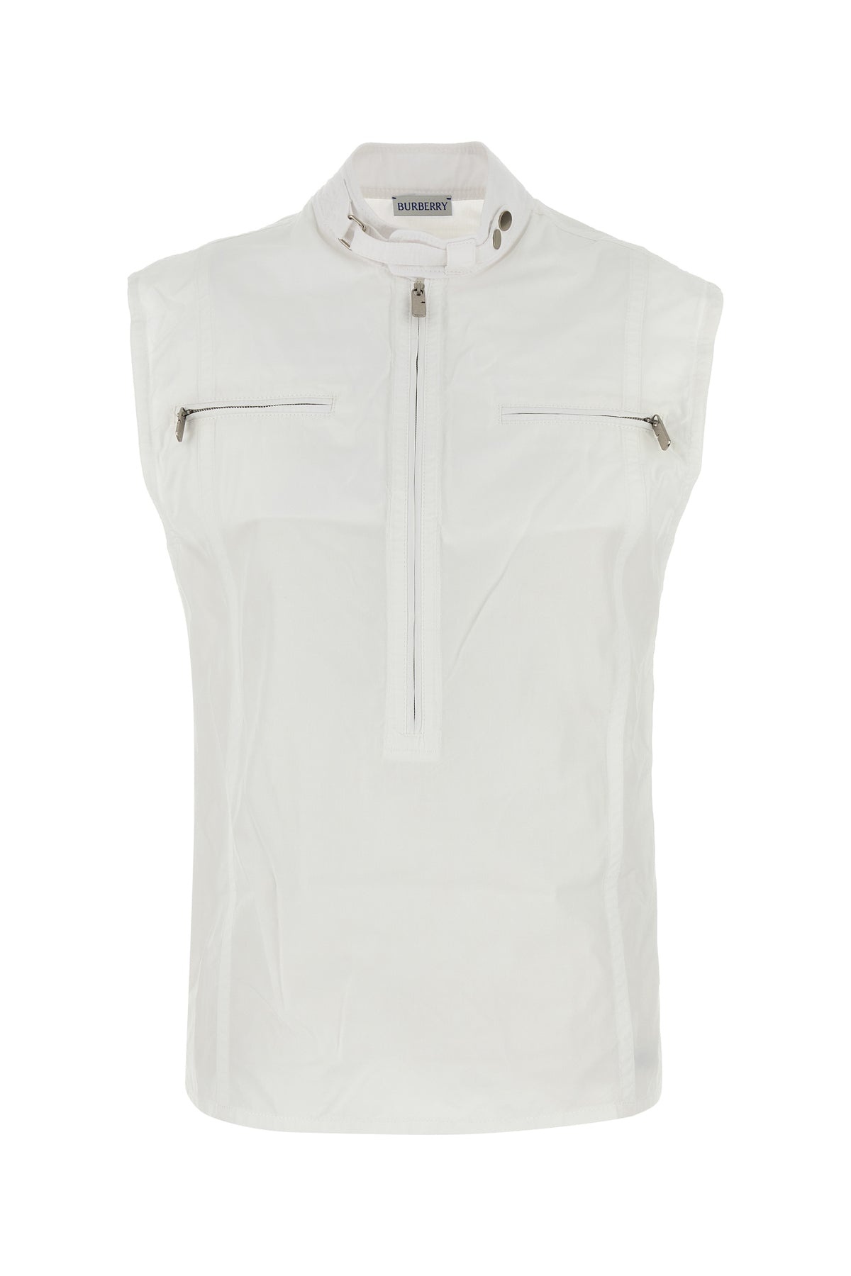 Vest realized in pure cotton characterized by high neck with strap. - Partial zip closure at the front - Chest pockets - Lateral slits on the hemline DETAILS White cotton vest Exterior: 100% Cotton Made in romania Sample size: 4