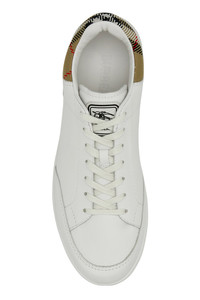 Sneakers realized in smooth leather characterized by Burberry Check embroidery at the back and embossed logo on the sole. - Lace-up closure - Logoed label on the padded tongue - Padded ankle - Embossed logo on the inside DETAILS White leather Set sneakers Exterior: 100% Leather 100% Fabric Interior: 100% Leather Sole: Rubber Made in italy