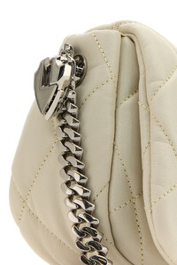 Shoulder bag realized in quilted lamb leather. - Metal chain shoulder strap that can be worn single or double - Magneti button closure under the flap - Lined interior with a credit card slot DETAILS White leather Shield Lock shoulder bag Exterior: 100% Lamb leather Lining: 100% Lamb leather Finishing: Silver metal Made in italy Width: 25 cm Height: 14 cm Depth: 8 cm Min shoulder strap length: 19 cm Max shoulder strap length: 33 cm