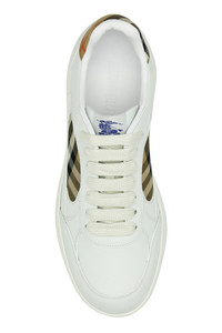 Sneakers realized in smooth leather with embroidered Burberry Check motif fabric inserts on the sides and on the heel. - Lace-up closure - Logoed label on the padded tongue - Padded ankle - Embossed logo on the inside DETAILS White leather sneakers Exterior: 100% Leather Interior: 100% Leather Sole: Rubber Made in