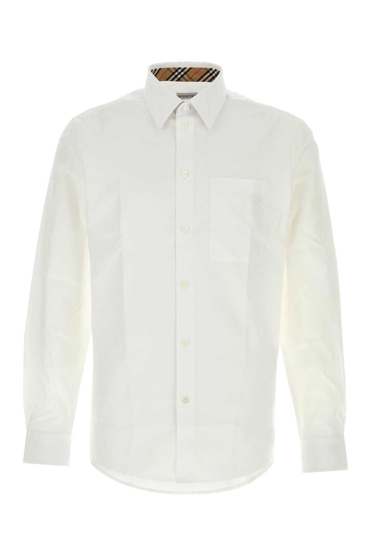 Shirt realized in stretch cotton poplin characterized by tonal Equestrian Knight embroidery on the chest. - Short-pointed collar - Buttons closure - Chest pocket - Buttoned angle cuffs - Rear yoke DETAILS White stretch poplin shirt Exterior: 96% Cotton 4% Elastane Made in Sample size: M