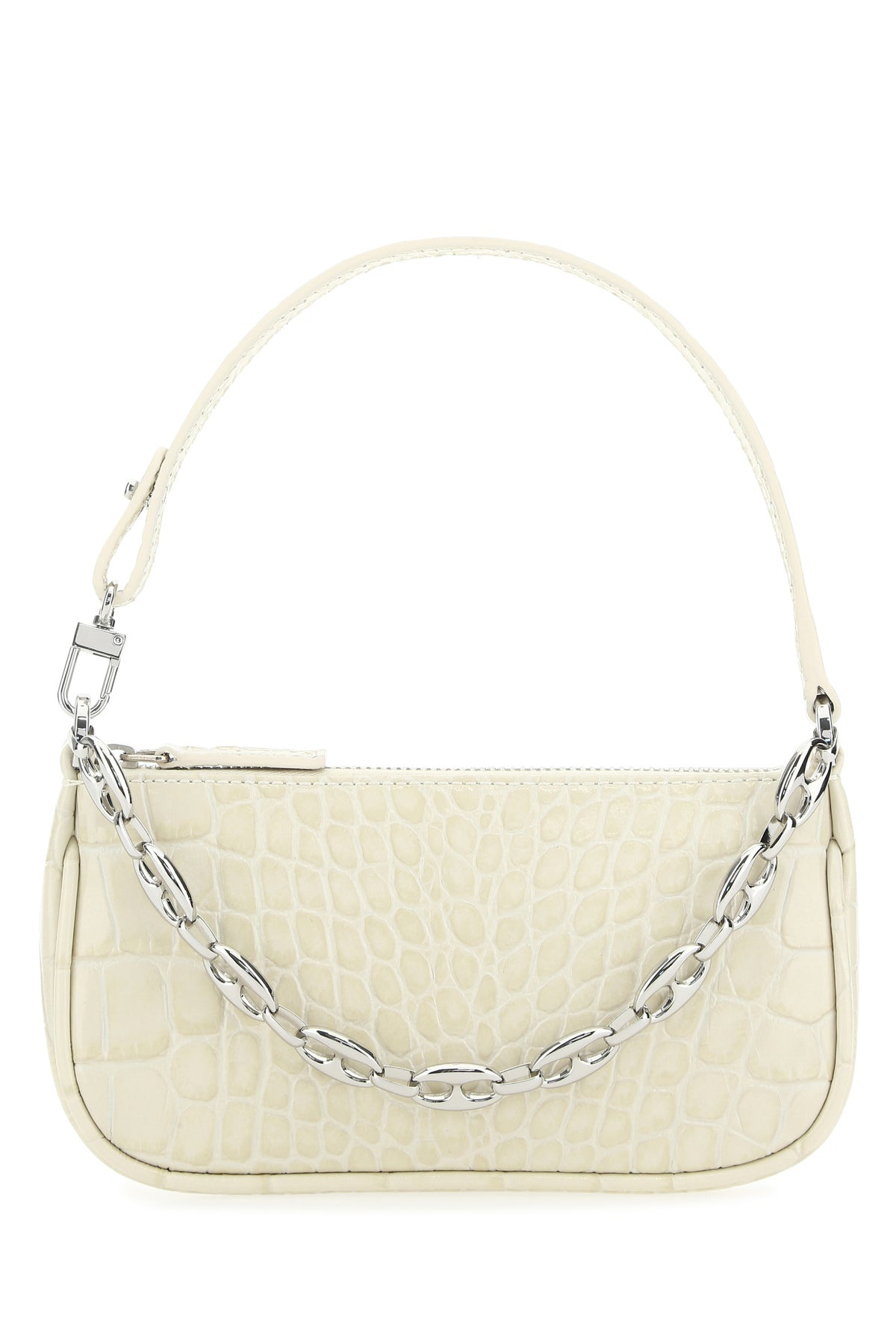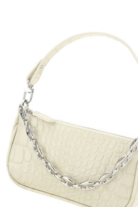 Handbag realized in crocodile motif embossed leather enriched by metal chain insert. - Tonal flat leather handle - Zip closure - Lined interior DETAILS Exterior: 100% Bovine leather Lining: 100% Cotton Finishing: Silver metal Width: 18 cm Height: 9 cm Depth: 3 cm Handle height: 13 cm