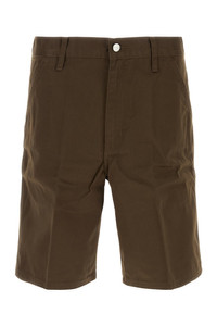 Bermuda shorts realized in twill enriched by contrasting logoed label at the back. - Belt loops at the waist - Concealed zip and single visible button closure - Five classic pockets - Central ironed pleats DETAILS Brown twill Simple Short Exterior: 65% Polyester 35% Cotton Made in pakistan Sample size: 31