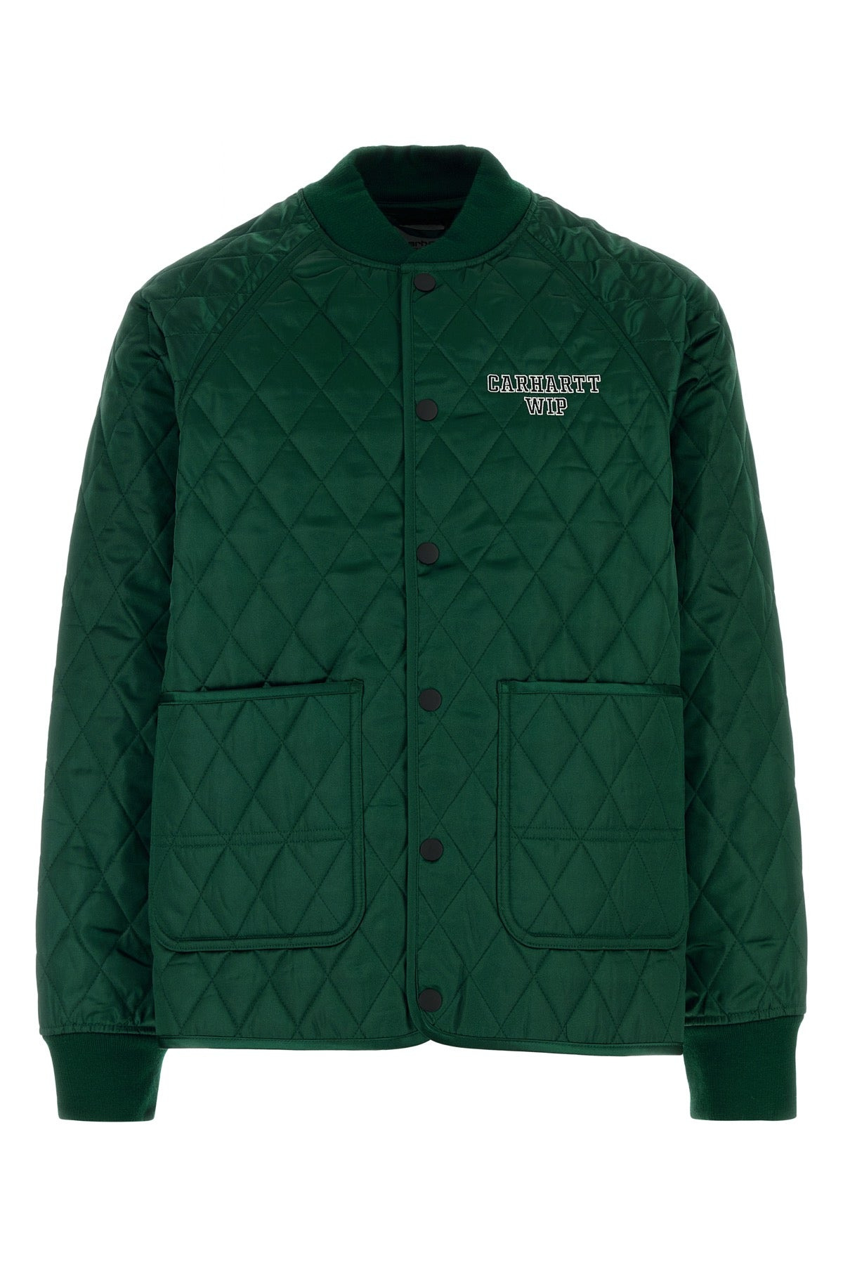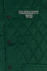 Bomber jacket realized in quilted polyester characterized by contrasting embroidered logo on the chest. - Ribbed crew-neck and cuffs - Raglan sleeves - Buttons closure - Two patch pockets at the front - Lined DETAILS Emerald green polyester Alumni Liner Exterior: 100% Polyester Lining: 100% Polyester Made in cambodia Sample size: M