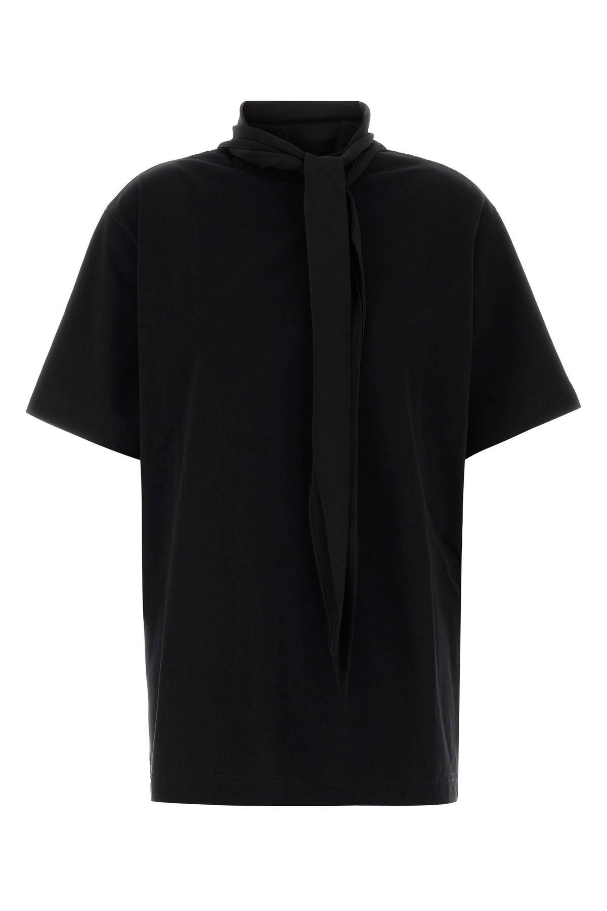 Oversize t-shirt realized in pure cotton. - Silk ribbons to tie at the neck - Ribbed crew-neck DETAILS Black cotton oversize t-shirt Exterior: 100% Cotton Made in china Sample size: XS