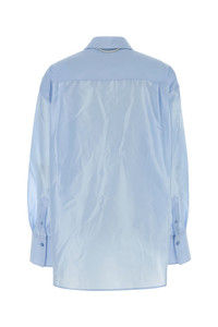 Oversize shirt realized in organza characterized by short-pointed collar. - Buttons closure - Angle cuffs with buttons - Rear yoke - Slightly longer back DETAILS Light blue organza oversize shirt Exterior: 75% Polyester 25% Silk Made in china Sample size: 38