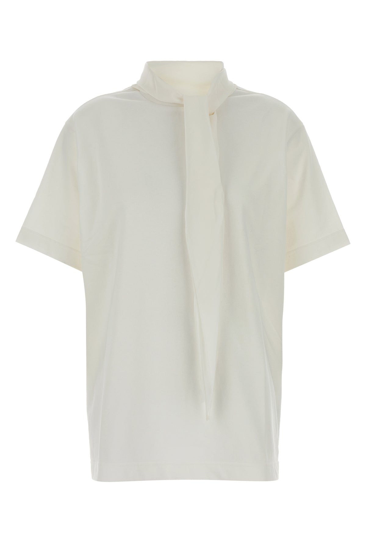 Oversize t-shirt realized in pure cotton. - Silk ribbons to tie at the neck - Ribbed crew-neck DETAILS White cotton oversize t-shirt Exterior: 100% Cotton Made in china Sample size: XS