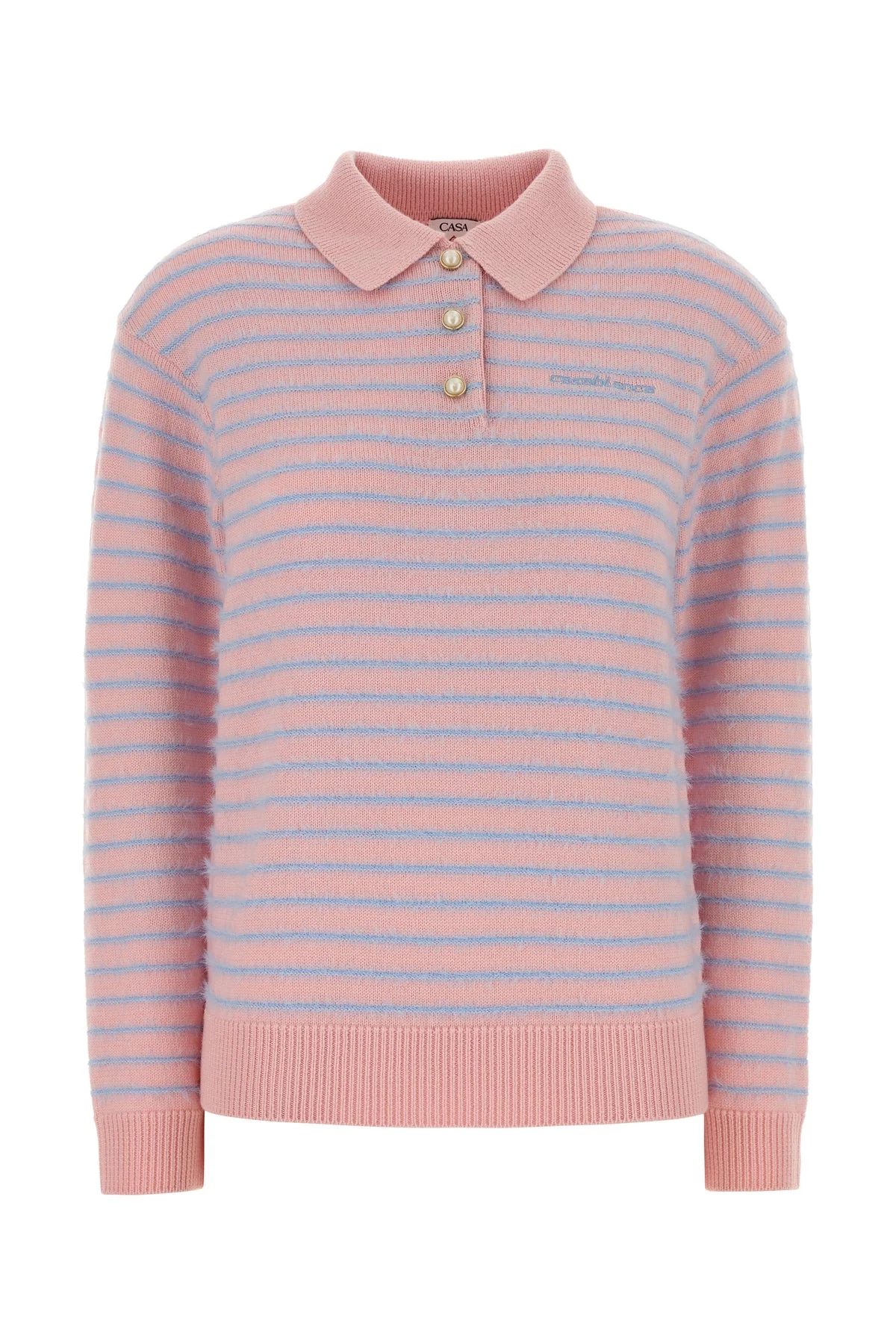 Long-sleeves polo shirt realized in wool blend characterized by striped embroidery on the entire surface enriched by embroidered logo on the chest. - Collar - Partial buttons closure - Ribbed cuffs and hemline DETAILS Embroidered wool blend polo shirt Exterior: 92% Wool 8% Nylon Made in china Sample size: XS