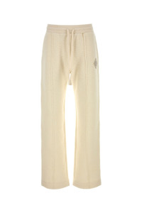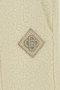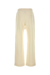 Joggers realized in teddy enriched by logoed patch at the front. - Elastic waist with drawstring - Slant pockets and a patch pocket at the back - Central ironed pleats DETAILS Ivory teddy joggers Exterior: 30% Wool 22% Viscose 17% Nylon 14% Polyester 8% Cashmere Made in portugal Sample size: M