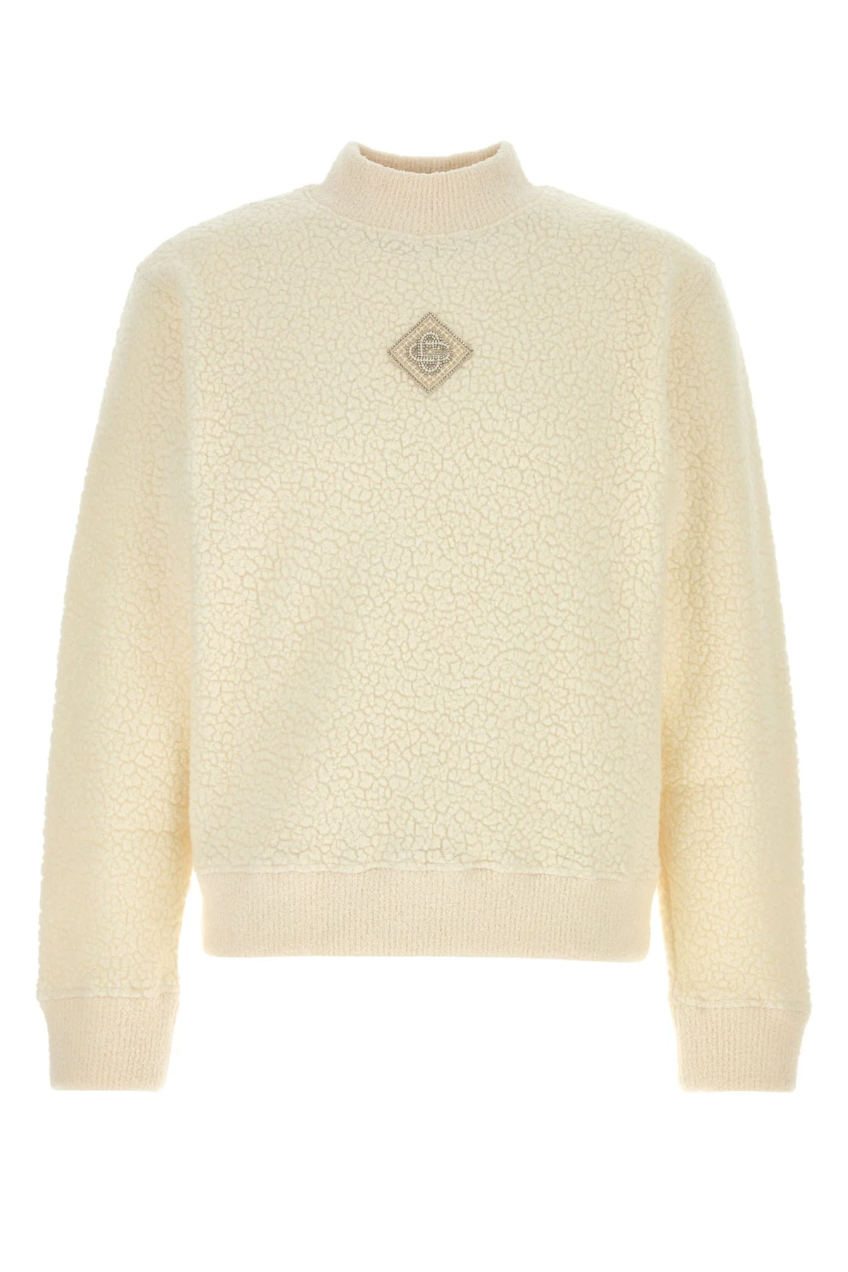 Sweatshirt realized in wool blend terry fabric enriched by jewel logoed embellishment at the front. - Ribbed crew-neck, cuffs and hemline DETAILS Ivory terry fabric sweatshirt Exterior: 39% Wool 22% Viscose 17% Nylon 14% Polyester 8% Cashmere Made in portugal Sample size: M