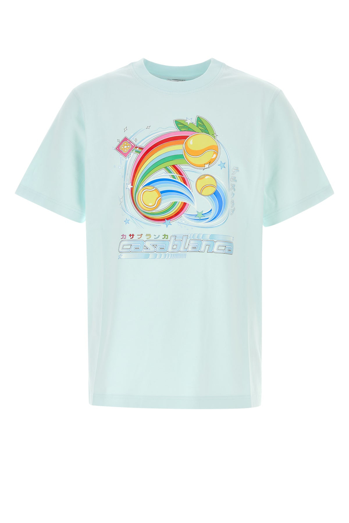 T-shirt realized in pure organic cotton characterized by Manga Tennis Ball print at the front. - Ribbed crew-neck - Loose fit DETAILS Pastel light-blue cotton t-shirt Exterior: 100% Organic cotton Made in portugal Sample size: M