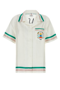 Short-sleeve shirt realized in pure silk satin characterized by Casa Way print on the chest and at the back and contrasting bands on the trimmings. - Notched collar - Concealed buttons closure - Chest pocket DETAILS White satin shirt Exterior: 100% Silk Made in italy Sample size: M