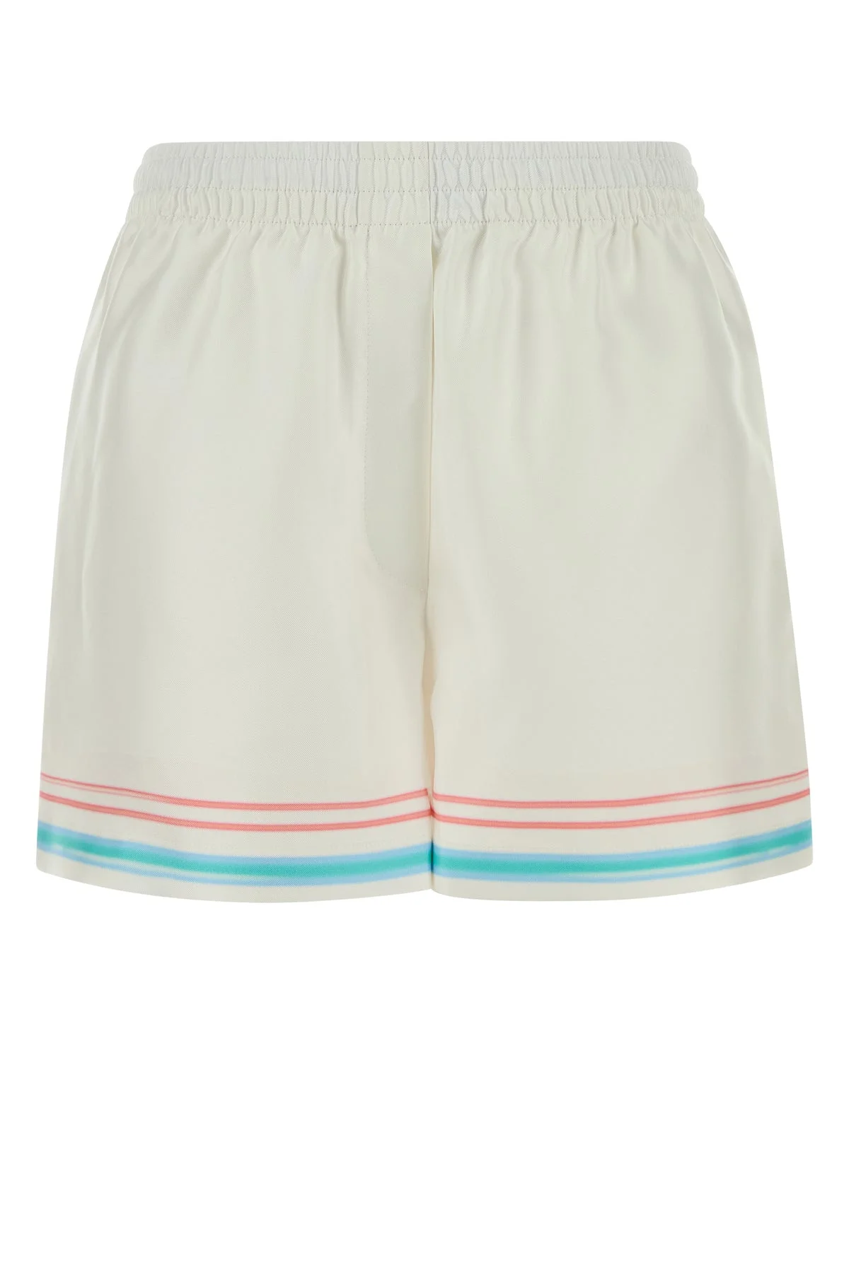 Shorts realized in pure silk characterized by Dance Joy print at the back. - Elastic waist - Seam pockets and a patch pocket at the back DETAILS White silk shorts Exterior: 100% Silk Made in italy Sample size: XS