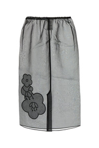 Skirt realized in organza enriched by floral patch at the front. - Elastic waist with drawstring - Central slit at the back - Unlined DETAILS Black organza Bambi skirt Exterior: 55% Nylon 45% Polyester Made in latvia Sample size: 6